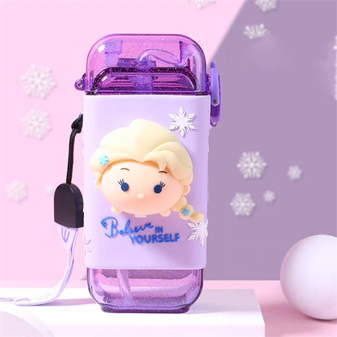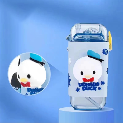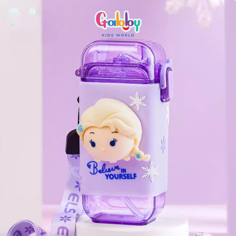 - Thiết kế: bình có hình dạng trụ chữ nhật, có ống hút và dây đeo tiện lợi. Bình nước có màu sắc bắt mắt và phụ kiện hình 3D theo nhân vật Disney đáng yêu.