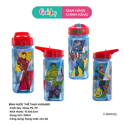 * Thiết kế: bình uống nước có màu sắc nổi bật và hình in nhiệt nhân vật Disney/ Marvel cực đáng yêu