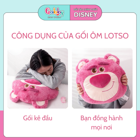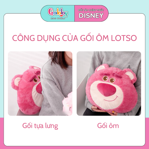 * Làm gối ôm: Bé có thể ôm chiếc gối Lotso khi ngủ hoặc khi chơi, mang đến cảm giác an toàn và ấm áp.